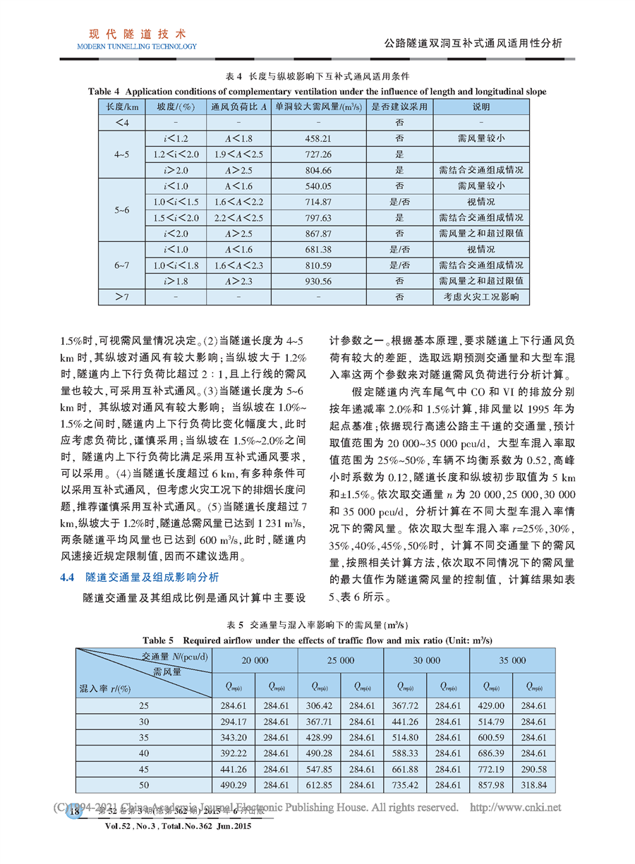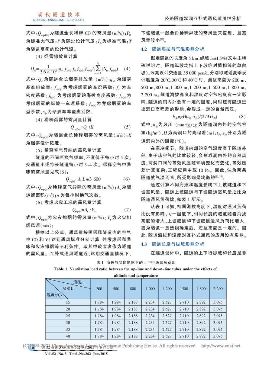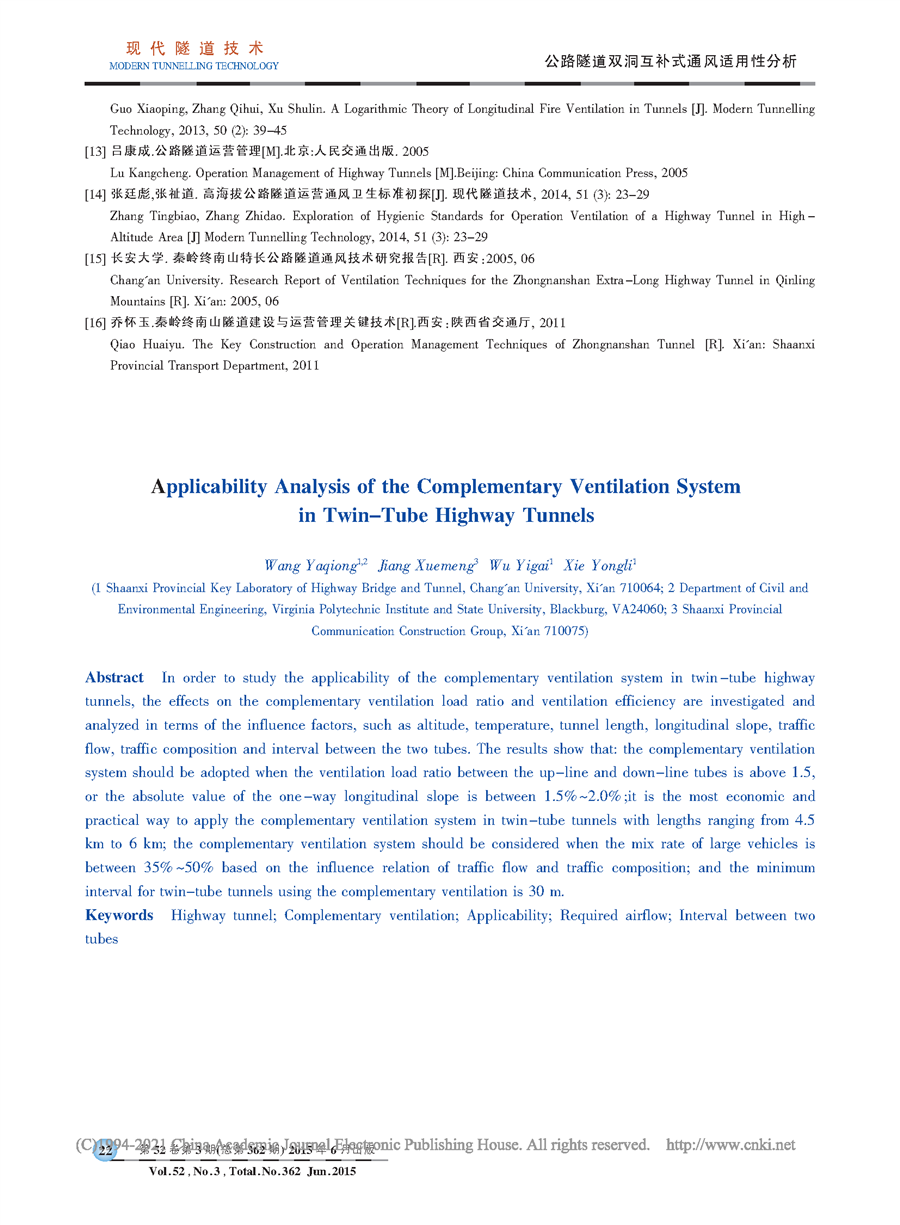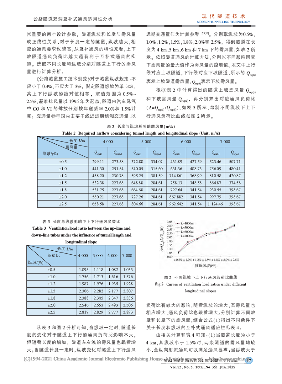 公路隧道双洞互补式通风适用性分析