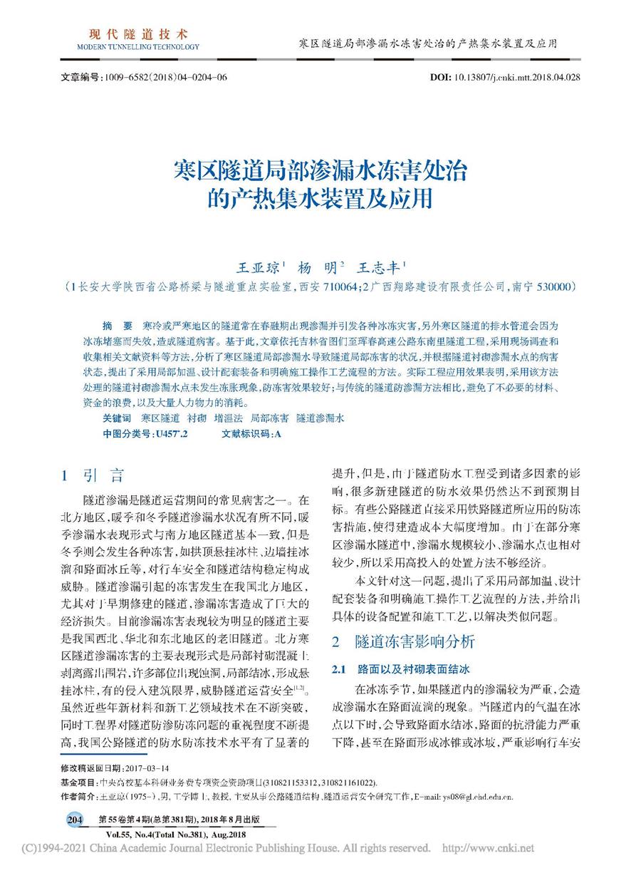 寒区隧道局部渗漏水冻害处治的产热集水装置及应用