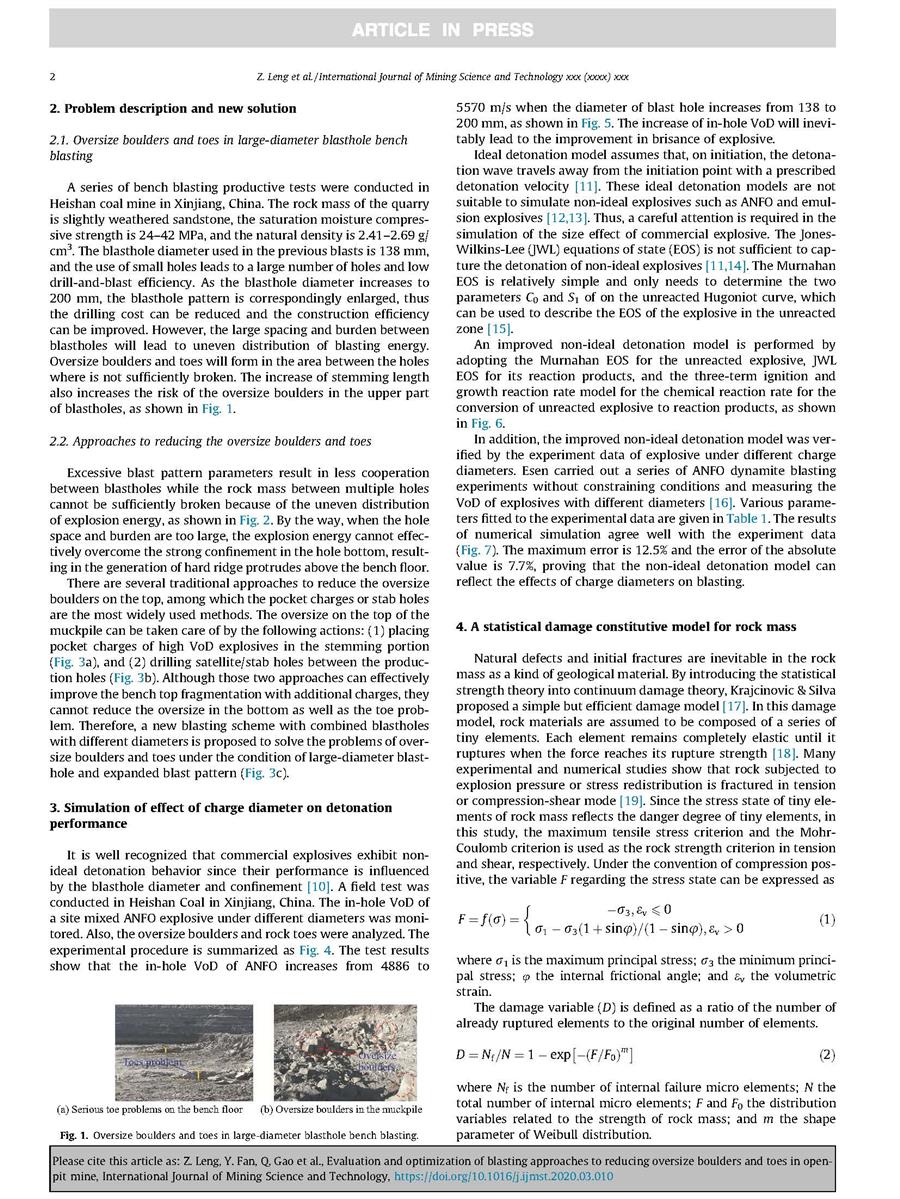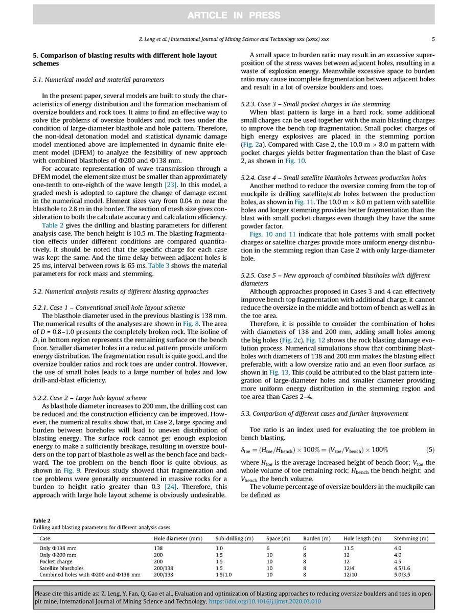 Evaluation and optimization of blasting approaches to reducing oversize boulders and toes in open-pi