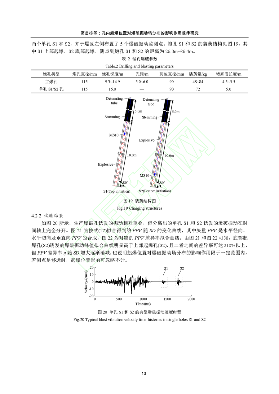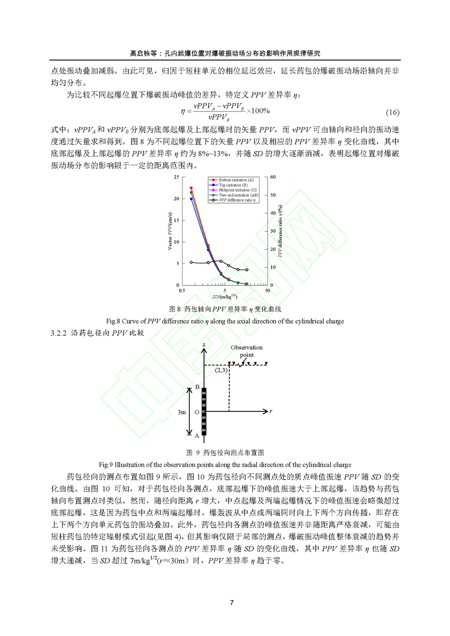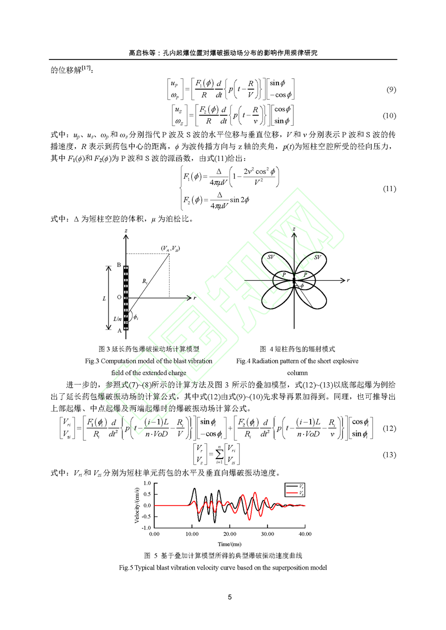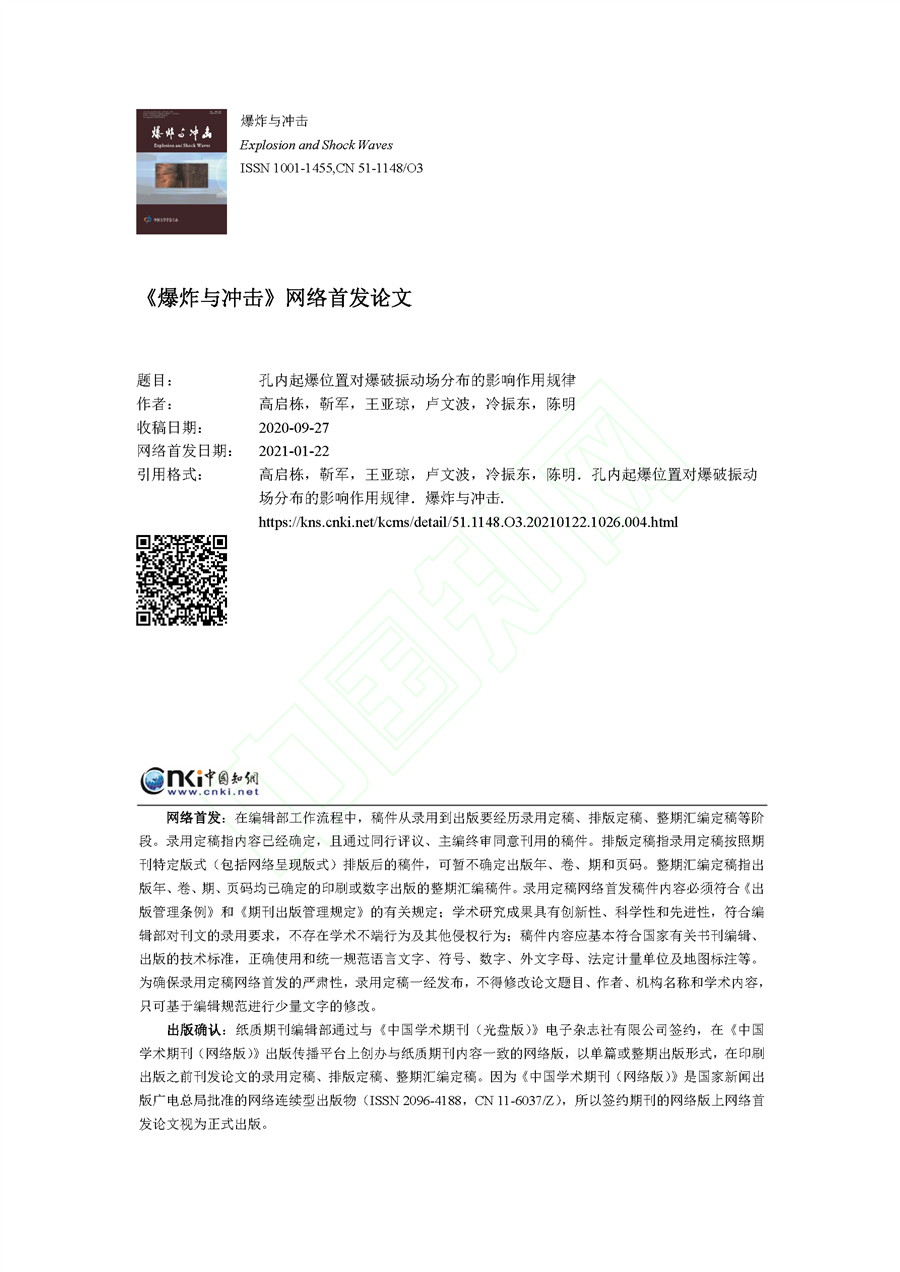 孔内起爆位置对爆破振动场分布的影响作用规律