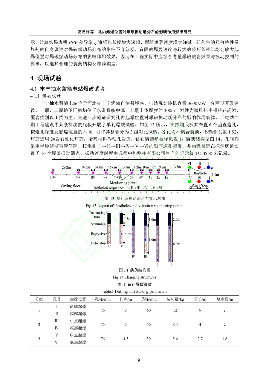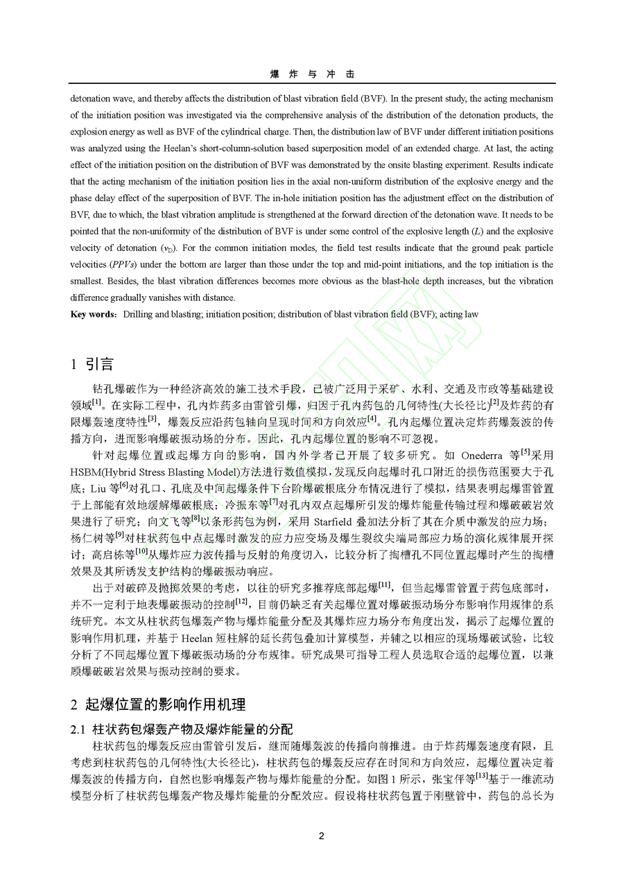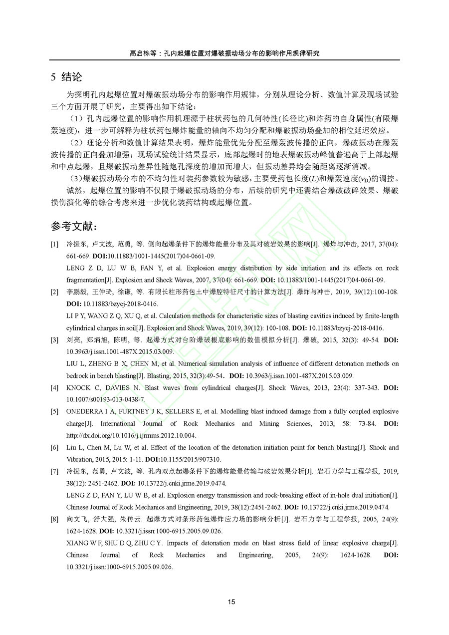 孔内起爆位置对爆破振动场分布的影响作用规律