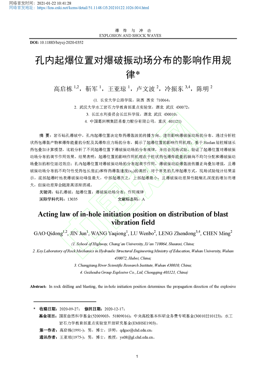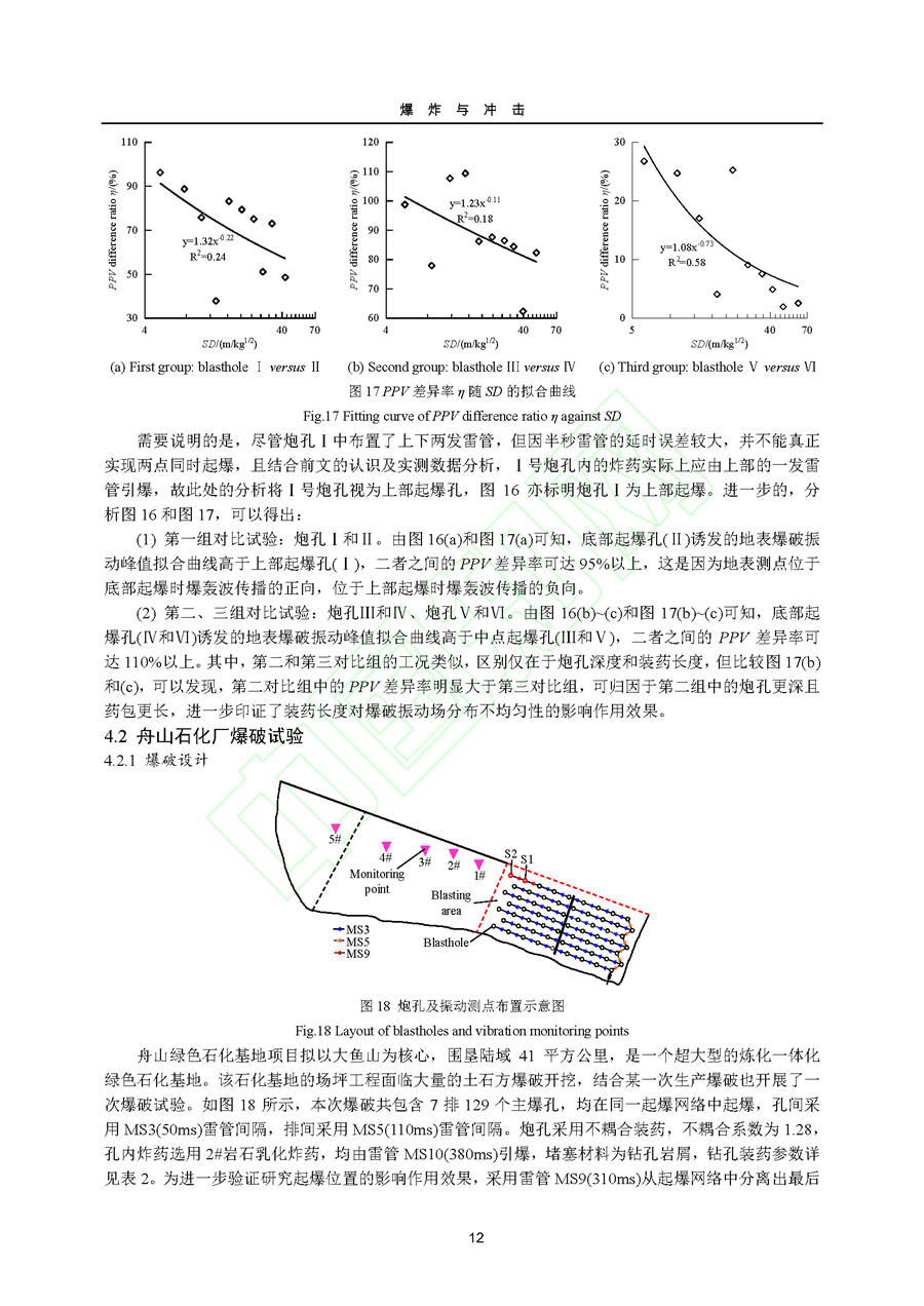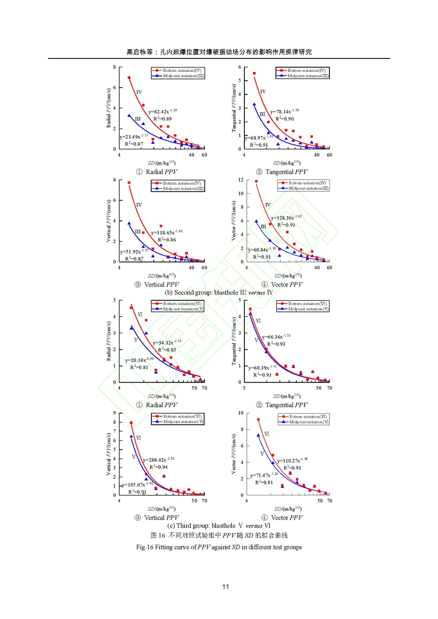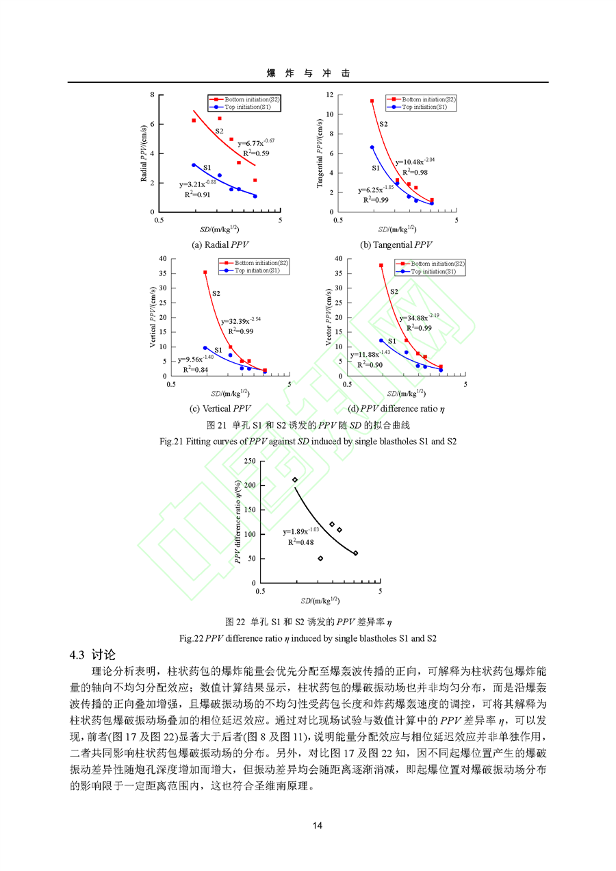 孔内起爆位置对爆破振动场分布的影响作用规律