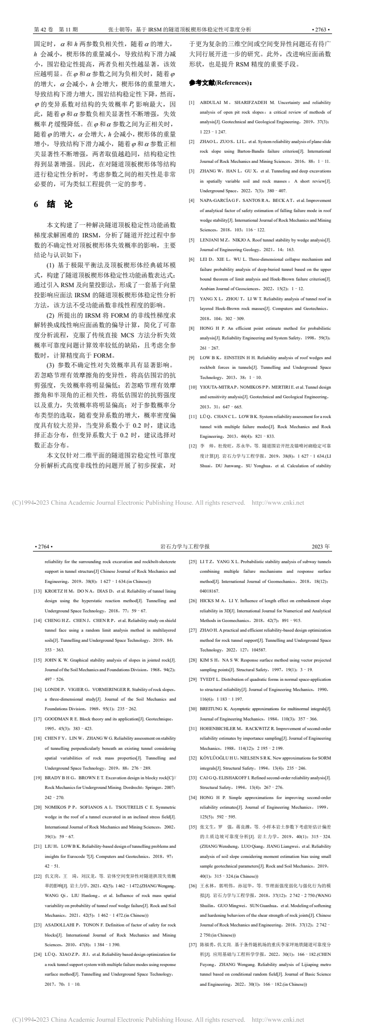 基于 IRSM 的隧道顶板楔形体稳定性可靠度分析
